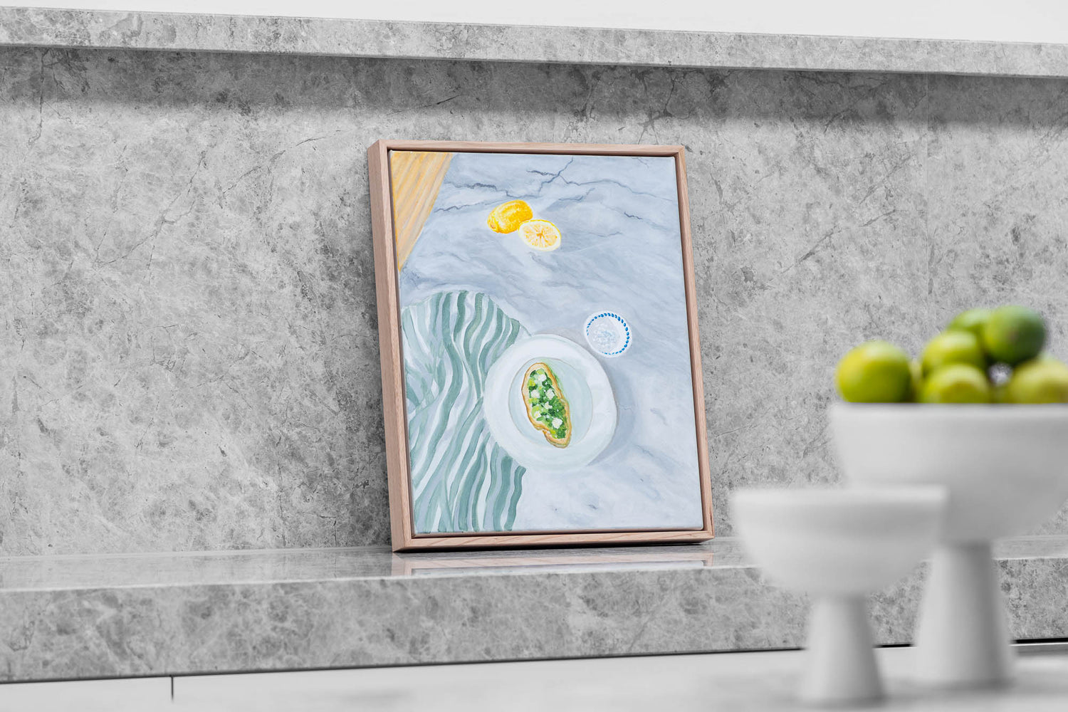 Canvas - Stretched and float framed in premium 1cm wide x 5.5cm deep Tas Oak with a 5mm 'shadow' line between frame and canvas. Ready to hang.